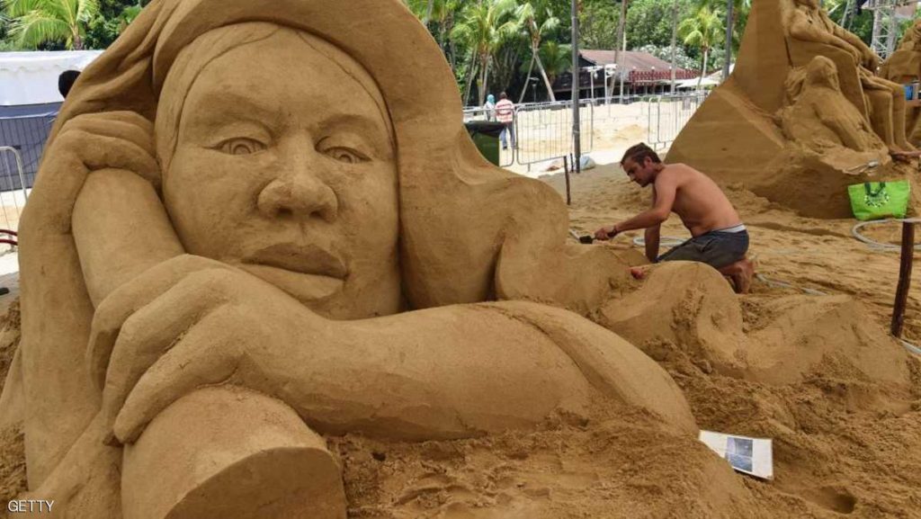 شهدت سنغافورة مسابقة عالمية للنحت على الرمل شارك فيها عشرات الفنانين وأنتجوا لوحات فنية مميزة.