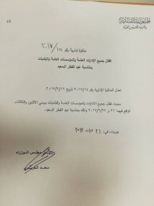 مذكرة بإقفال جميع الادارات والمؤسسات العامة والبلديات يومي الاثنين 26 والثلاثاء 27 حزيران في لبنان وذلك...